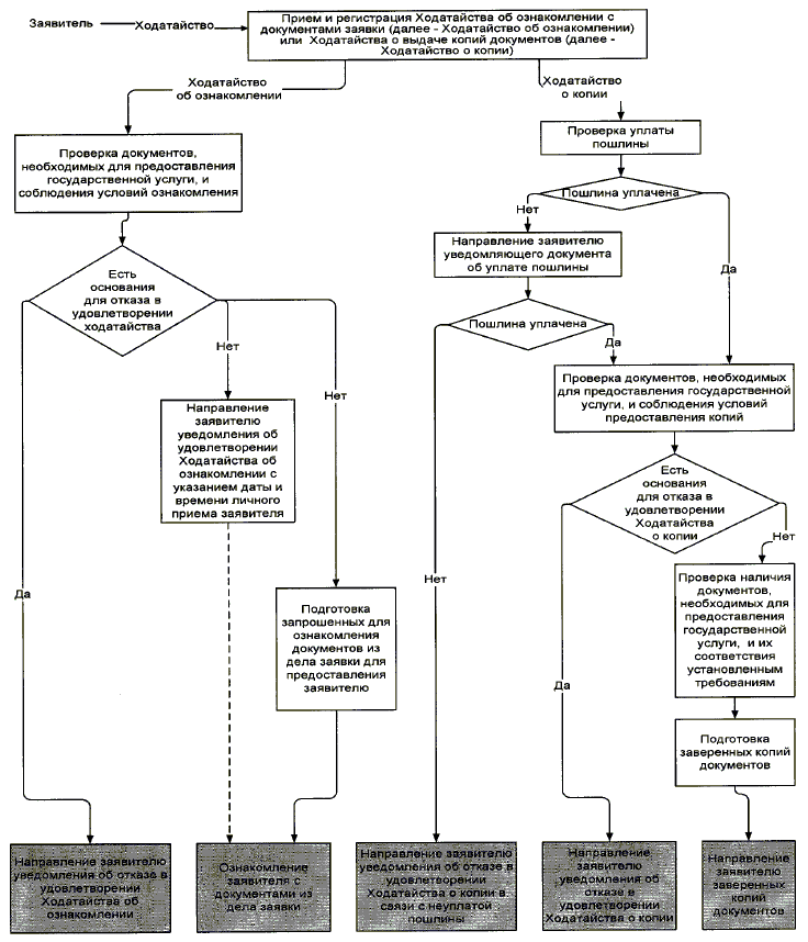 83. Административное действие, предусмотренное подпунктом 2 пункта 76 Регламента, осуществляется в случае отсутствия оснований отказа в удовлетворении ходатайства, касающегося ознакомления с документами заявки, указанных в пункте 81 Регламента, и включает: