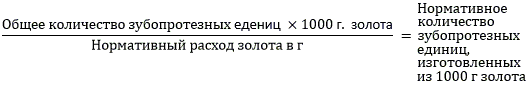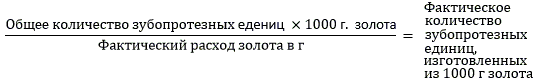 Полученные данные сравниваются - фактическое количество зубопротезных единиц, изготовленных из 1000 г золота, должно быть равно или превышать нормативное количество единиц.