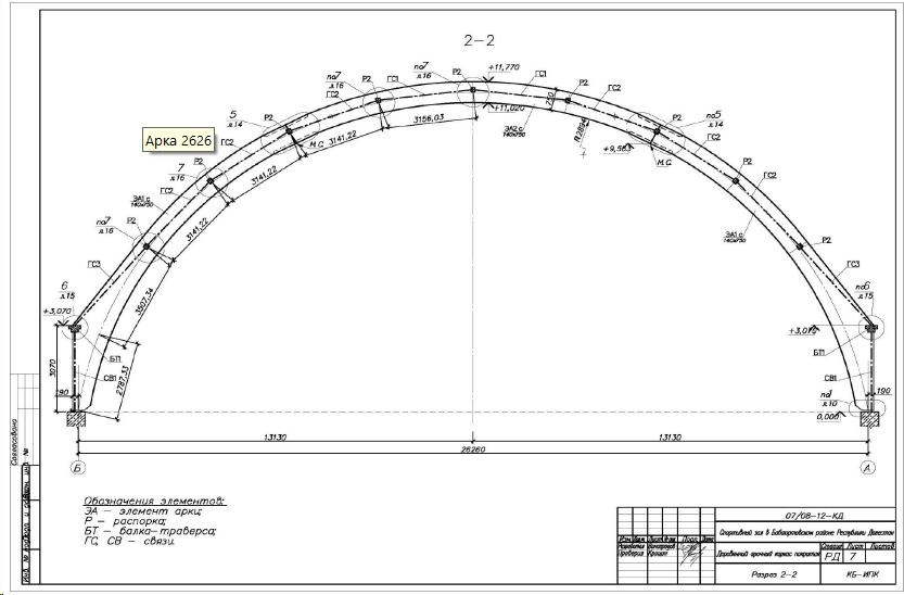 Деревоклееная конструкция 26 x 42м для перекрытия универсального спортивного зала со встроенным АБК