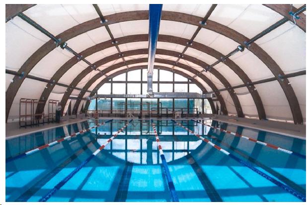 - светопропускная способность материала покрытия - позволяет солнечным лучам на 80% проникать в помещение, что способствует обогреву спортивного сооружения в дневное время зимой и экономии на освещении помещений.