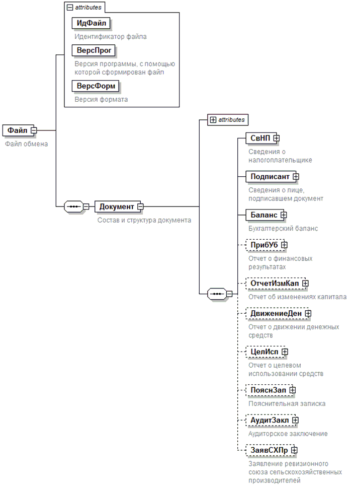 XML схема файла обмена приводится отдельным файлом и размещается на сайте Федеральной налоговой службы.