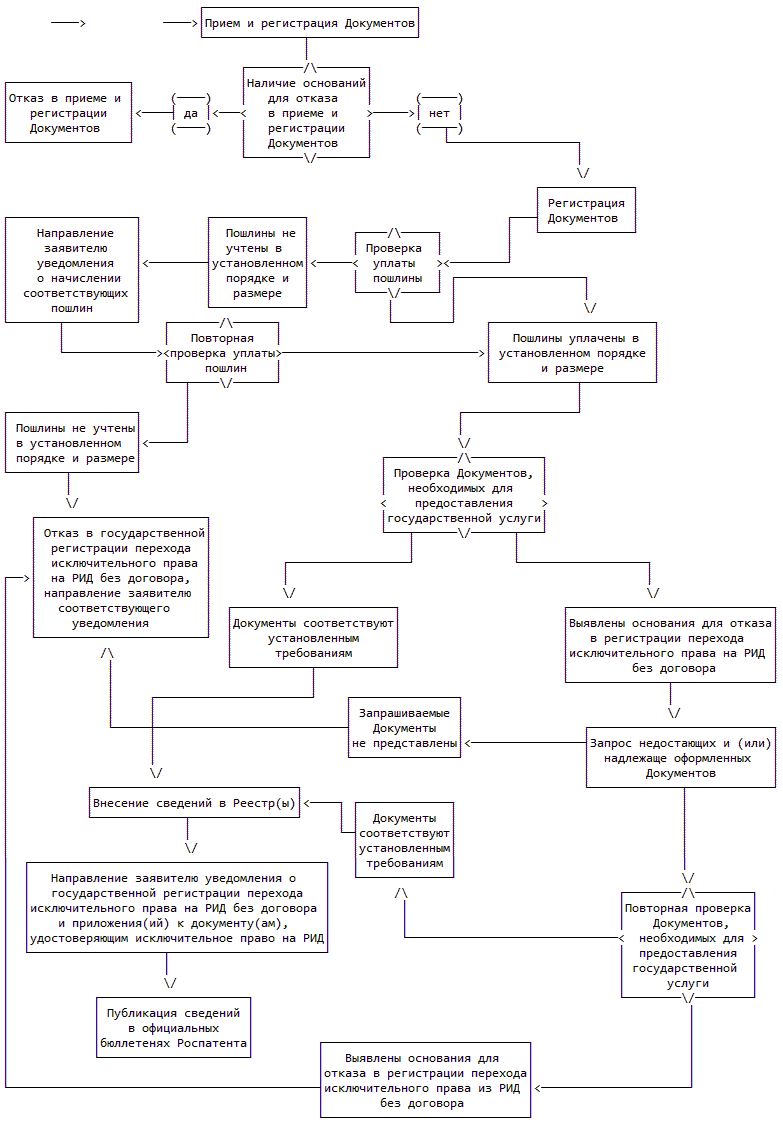 ПРЕДОСТАВЛЕНИЯ ФЕДЕРАЛЬНОЙ СЛУЖБОЙ ПО ИНТЕЛЛЕКТУАЛЬНОЙ СОБСТВЕННОСТИ ГОСУДАРСТВЕННОЙ УСЛУГИ ПО ГОСУДАРСТВЕННОЙ РЕГИСТРАЦИИ ПЕРЕХОДА ИСКЛЮЧИТЕЛЬНОГО ПРАВА НА ИЗОБРЕТЕНИЕ, ПОЛЕЗНУЮ МОДЕЛЬ, ПРОМЫШЛЕННЫЙ ОБРАЗЕЦ, ТОВАРНЫЙ ЗНАК, ЗНАК ОБСЛУЖИВАНИЯ, НАИМЕНОВАНИЕ МЕСТА ПРОИСХОЖДЕНИЯ ТОВАРА, ЗАРЕГИСТРИРОВАННЫЕ ТОПОЛОГИЮ ИНТЕГРАЛЬНОЙ МИКРОСХЕМЫ, ПРОГРАММУ ДЛЯ ЭЛЕКТРОННЫХ ВЫЧИСЛИТЕЛЬНЫХ МАШИН, БАЗУ ДАННЫХ БЕЗ ДОГОВОРА