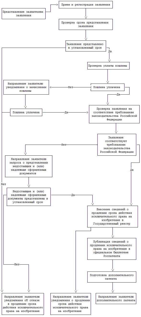 АДМИНИСТРАТИВНЫЙ РЕГЛАМЕНТ ПРЕДОСТАВЛЕНИЯ ФЕДЕРАЛЬНОЙ СЛУЖБОЙ ПО ИНТЕЛЛЕКТУАЛЬНОЙ СОБСТВЕННОСТИ ГОСУДАРСТВЕННОЙ УСЛУГИ ПО ПРОДЛЕНИЮ СРОКА ДЕЙСТВИЯ ИСКЛЮЧИТЕЛЬНОГО ПРАВА НА ИЗОБРЕТЕНИЕ И УДОСТОВЕРЯЮЩЕГО ЭТО ПРАВО ПАТЕНТА