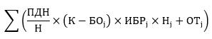Субi = 0,5 x (РНДi - ПУ) x Ni,