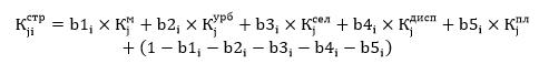 - коэффициент урбанизации j-го поселения;
