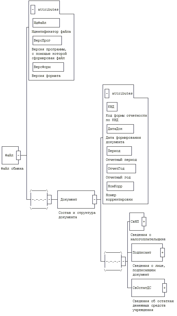 | Сведения об остатках денежных средств учреждения | СвОстатДС | С | | О | Состав элемента представлен в табл. 4.7 |