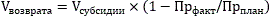 При расчете возврата субсидии используются только положительные значения, отражающие уровень недостижения показателя результативности и эффективности использования субсидии.";