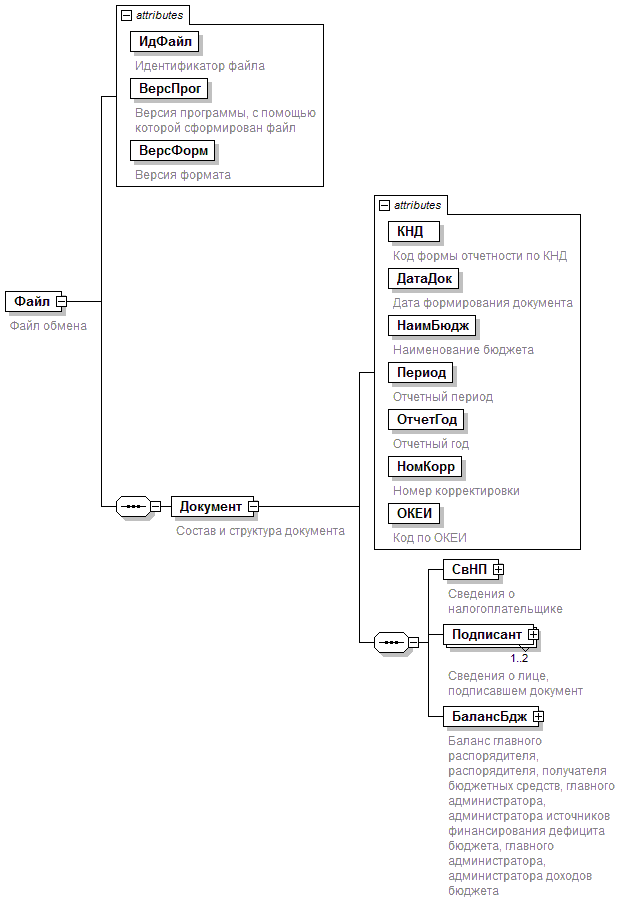 XML схема файла обмена приводится отдельным файлом и размещается на сайте Федеральной налоговой службы.