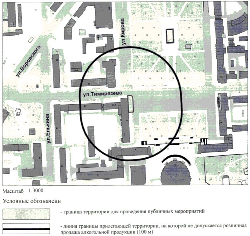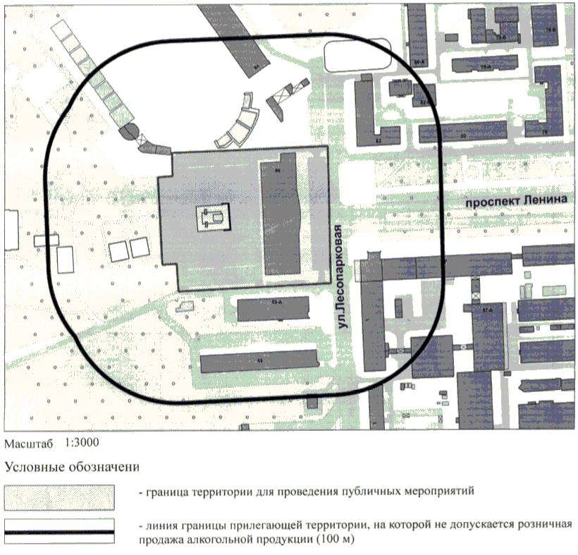 СХЕМА ГРАНИЦ ТЕРРИТОРИИ, НА КОТОРОЙ НЕ ДОПУСКАЕТСЯ РОЗНИЧНАЯ ПРОДАЖА АЛКОГОЛЬНОЙ ПРОДУКЦИИ, ПРИЛЕГАЮЩЕЙ К ПЛОЩАДКЕ У ПАМЯТНИКА КУРЧАТОВУ