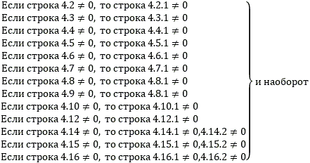 Строка 4.1.1 = сумме строк 4.2.1, 4.3.1, 4.4.1, 4.5.1, 4.6.1, 4.7.1, 4.8.1