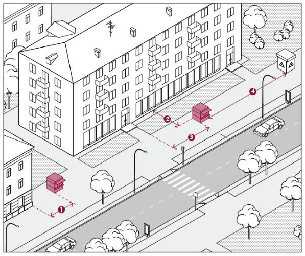 Размещение (установка) некапитальных строений, сооружений не должно мешать пешеходному движению по тротуарам, передвижению автотранспорта по предусмотренным для такого передвижения проездам, а также проезду пожарной техники к капитальным объектам, нарушать условия инсоляции территорий и помещений, рядом с которыми они расположены и к которым предъявляются нормативные требования по инсоляции.