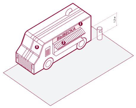 а) автокафе, как правило, размещают в местах с высокой проходимостью (рисунок 33);