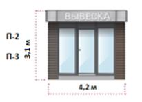 На главном фасаде остановочного комплекса хозяйствующим субъектом может быть размещена вывеска с информацией о фирменном наименовании (наименовании) организации, расположенной внутри остановочного павильона, месте ее нахождения (адрес) и режиме ее работы. Наименование торгового объекта должно размещаться на фризовой части главного фасада, над торговой зоной, с нанесением надписи непосредственно на фриз, без использования фоновой подложки (размещение надписи на фоновой подложке допустимо в случае, если фриз конструктивно разделен на отдельные участки, а фоновая подложка вывески полностью перекрывает весь участок фриза, на котором располагается вывеска, как по длине, так и по высоте).