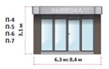 3) П-4 (4,2 х 6,3 м), П-5 (4,2 х 8,4 м), П-6 (6,3 х 6,3 м), П-7 (6,3 х 8,4 м) (рисунок 39);