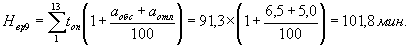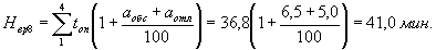 Н_вр= 62,8 + 41,6 + 64,9 + 47,5 + 33,4 + 33,4+53,2 + 41,0 + 101,8 = 479,6 мин : 60 = 7,99 час.