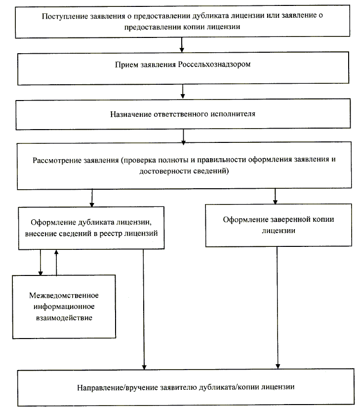 4) предоставление дубликата лицензии, копии лицензии - три рабочих дня со дня получения Россельхознадзором заявления о выдаче дубликата лицензии или копии лицензии и документов (сведений), предусмотренных пунктами 21, 22 Регламента;