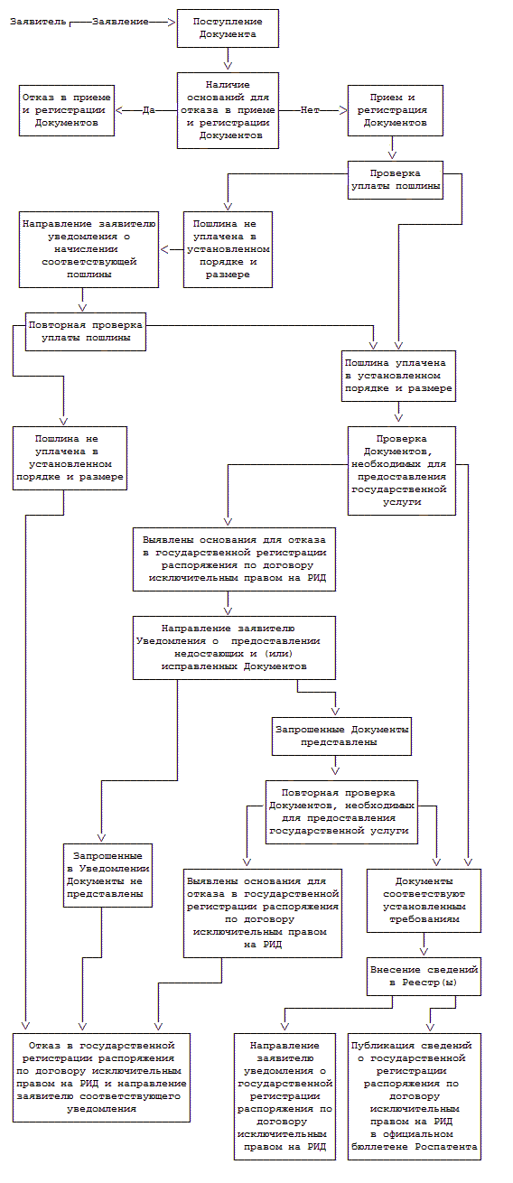 АДМИНИСТРАТИВНЫЙ РЕГЛАМЕНТ ПРЕДОСТАВЛЕНИЯ ФЕДЕРАЛЬНОЙ СЛУЖБОЙ ПО ИНТЕЛЛЕКТУАЛЬНОЙ СОБСТВЕННОСТИ ГОСУДАРСТВЕННОЙ УСЛУГИ ПО ГОСУДАРСТВЕННОЙ РЕГИСТРАЦИИ РАСПОРЯЖЕНИЯ ПО ДОГОВОРУ ИСКЛЮЧИТЕЛЬНЫМ ПРАВОМ НА ИЗОБРЕТЕНИЕ, ПОЛЕЗНУЮ МОДЕЛЬ, ПРОМЫШЛЕННЫЙ ОБРАЗЕЦ, ТОВАРНЫЙ ЗНАК, ЗНАК ОБСЛУЖИВАНИЯ, ЗАРЕГИСТРИРОВАННЫЕ ТОПОЛОГИЮ ИНТЕГРАЛЬНОЙ МИКРОСХЕМЫ, ПРОГРАММУ ДЛЯ ЭЛЕКТРОННЫХ ВЫЧИСЛИТЕЛЬНЫХ МАШИН, БАЗУ ДАННЫХ