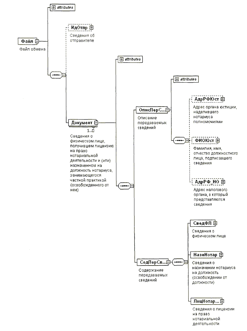 1. Настоящий формат описывает требования к XML файлам передачи в налоговые органы органами юстиции, выдающими лицензии на право нотариальной деятельности и наделяющими нотариусов полномочиями, сведений о физических лицах, получивших лицензию на право нотариальной деятельности и (или) назначенных на должность нотариуса, занимающегося частной практикой (освобожденного от нее), в электронной форме (далее - файл обмена).