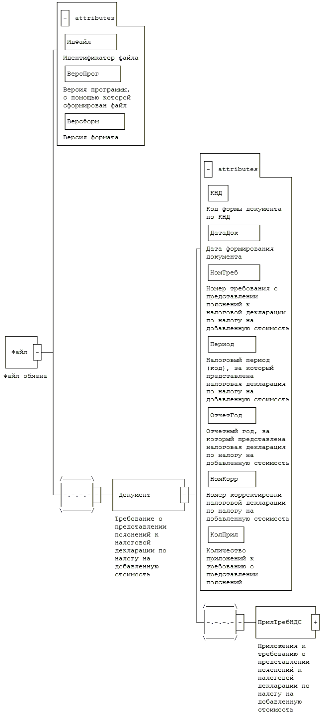 1. Настоящий формат описывает требования к XML файлам (далее - файлам обмена) передачи в электронной форме налоговыми органами налогоплательщику требования о представлении пояснений к налоговой декларации по налогу на добавленную стоимость.