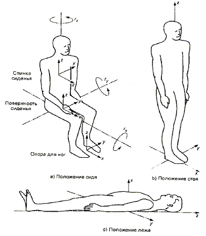 Рис. П 7.1. Направление осей при измерениях общей вибрации