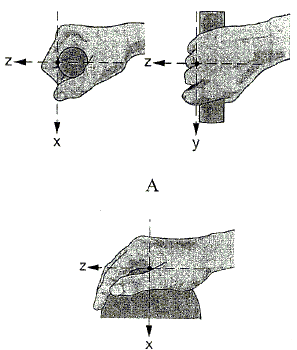 Рис. П 7.2. Направление осей при измерениях локальной вибрации