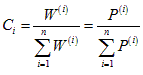 - относительный энерговклад каждого источника, определяемый как отношение энергии (мощности) источника с порядковым номером i к суммарной энергии (мощности) всех источников, рассчитываемый по формуле: