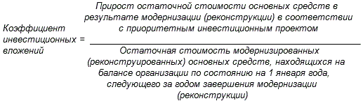5. Для целей определения размера налоговой ставки в случаях, предусмотренных подпунктом 28 пункта 1, пунктом 4 настоящей статьи, коэффициент инвестиционных вложений определяется по формуле: