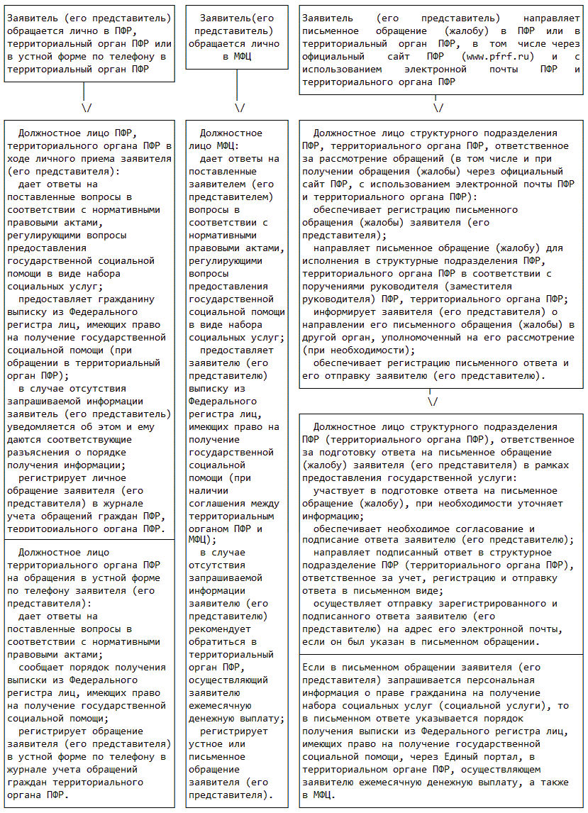 1. Настоящий Административный регламент устанавливает порядок предоставления Пенсионным фондом Российской Федерации государственной услуги по информированию граждан о предоставлении государственной социальной помощи в виде набора социальных услуг (далее - государственная услуга), стандарт предоставления государственной услуги, сроки и последовательность административных процедур Пенсионного фонда Российской Федерации (далее - ПФР) и его территориальных органов, порядок их взаимодействия с заявителями при предоставлении государственной услуги.