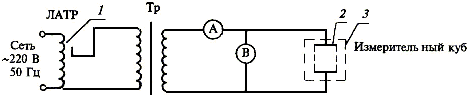 1 - лабораторный регулировочный трансформатор (ЛАТР); 2 -электрод; 3 - измерительный куб
