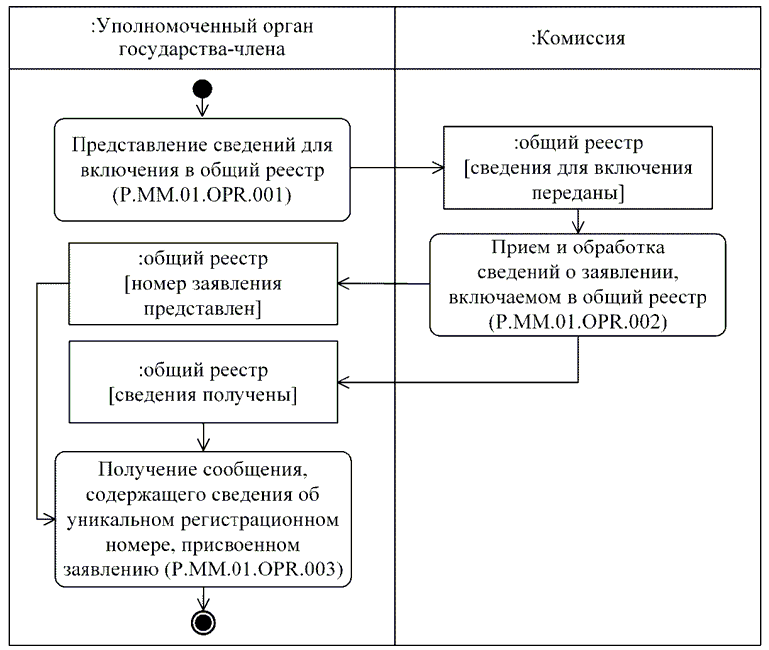 Уникальный регистрационный номер заявления присваивается средствами интегрированной системы и возвращается уполномоченному органу референтного государства в рамках выполнения процедуры "Включение сведений в общий реестр" (P.MM.01.PRC.001).