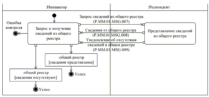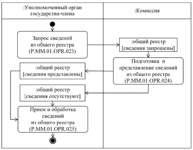 При представлении сведений о регистрации уполномоченным органам государств-членов выполняются следующие процедуры общего процесса, включенные в группу процедур получения уполномоченными органами государств-членов сведений, содержащихся в общем реестре: