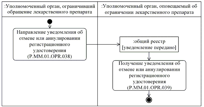 | P.MM.01.ACT.005 | уполномоченный орган, оповещаемый об ограничении обращения лекарственного препарата | уполномоченный орган государства-члена, который получает оповещение об отмене или аннулировании регистрации лекарственного препарата уполномоченным органом другого государства-члена |