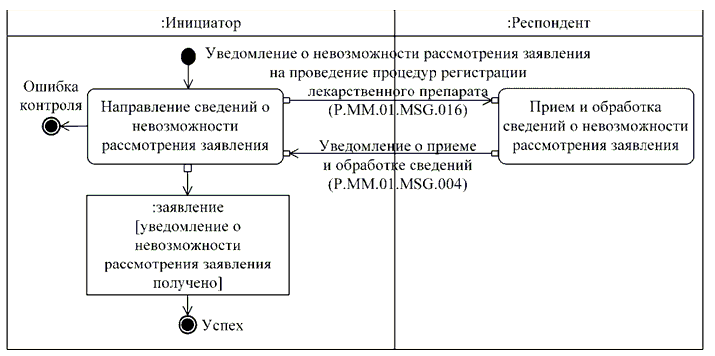 уведомление о невозможности рассмотрения заявления на проведение процедур регистрации лекарственного препарата;