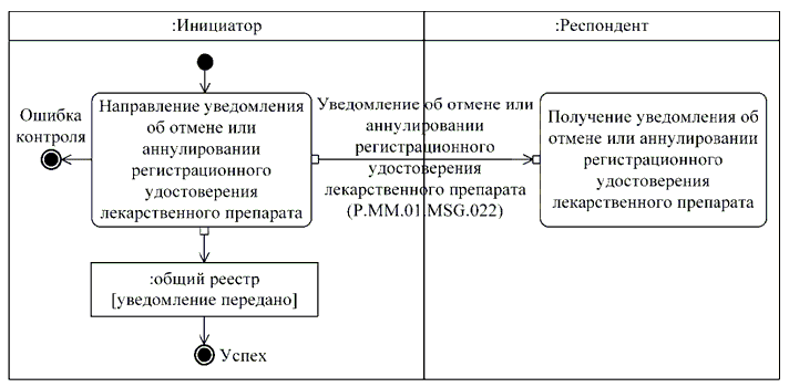 При принятии решения об отмене или об аннулировании регистрационного удостоверения в случаях, предусмотренных правилами регистрации, выполняется процедура общего процесса "Направление уведомления об отмене или аннулировании регистрационного удостоверения" включенная в группу процедур уведомления об отмене или аннулировании регистрационного удостоверения.