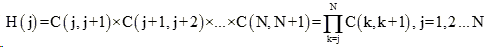 6. Определяются факторы развития убытков H(j) от каждого периода оплаты (развития) убытков до самого последнего из рассматриваемых периодов, соответствующие относительному увеличению совокупной величины оплаченных убытков от каждого из периодов оплаты (развития) убытков до последнего из рассматриваемых периодов: