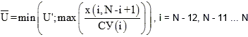 В этом случае в качестве резерва произошедших, но незаявленных убытков по данной учетной группе принимается наибольший из двух резервов произошедших, но незаявленных убытков: резерв, рассчитанный по формуле, приведенной в пункте 13 настоящего Приложения, и резерв, рассчитанный в размере 10 процентов от заработанной страховой премии за последние 4 квартала, предшествующие отчетной дате.