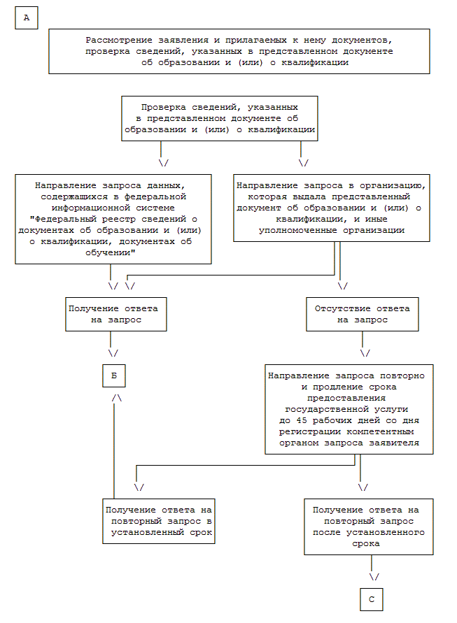 В случае отсутствия у уполномоченного органа данных о выдаче представленного документа об образовании и (или) о квалификации, образца подписи и в надлежащем случае оттиска печати и информации о полномочиях должностного лица, подписавшего документ об образовании и (или) о квалификации, уполномоченный орган направляет организации, выдавшей указанный документ, запрос о предоставлении соответствующей информации (далее - запрос). Запрос направляется в течение одного рабочего дня со дня установления уполномоченным органом факта отсутствия указанной информации. Запрос должен содержать наименование выданного документа об образовании и (или) о квалификации и его реквизиты. К запросу прилагается копия соответствующего документа об образовании и (или) о квалификации.