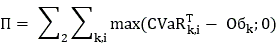 (условная стоимость под риском, рассчитанная с доверительной вероятностью 99 процентов) - величина, характеризующая среднеарифметическое значение по однопроцентной выборке наибольших негативных для центрального контрагента изменений стоимости за Т дней k-го нетто-набора участника клиринга (клиента участника клиринга) по i-му инструменту по итогам проведения клиринга и (или) торгов на организованных рынках, на которые приходится наибольший объем сделок по данному инструменту, в случае неисполнения обязательств данного участника клиринга (клиента участника клиринга) (в целях настоящего Положения под нетто-набором понимается сумма нетто-обязательств по всем сделкам с i-м инструментом и обеспечения, выраженного в i-м инструменте, участника клиринга (клиента участника клиринга). В случае если центральным контрагентом ведется отдельный внутренний учет обязательств и обеспечения в пользу клиента участника клиринга, то нетто-набор в отношении него рассчитывается обособлено;