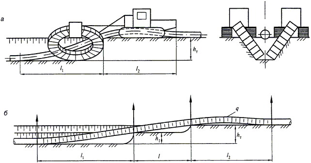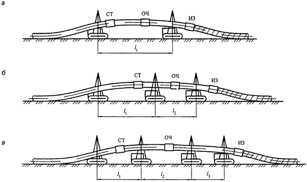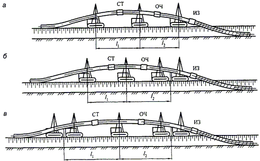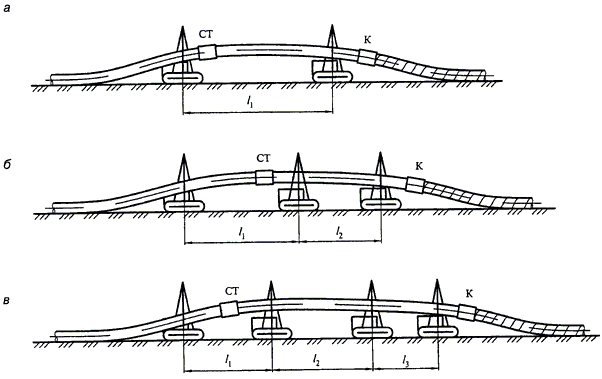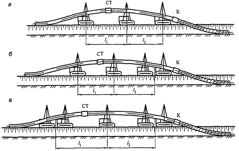 | Примечания. 1. Знак "-" означает, что расстояние не нормируется. 2. При канальной прокладке инженерных сетей расстояния, указанные в позиции 7, принимаются от наружной стенки канала. 3. При наличии выступающих частей опоры в пределах габарита приближения расстояния, указанные в позициях 6 - 8, принимаются от этих выступающих частей. 4. Запрещается установка опор в выемке или насыпи автомобильных дорог, железнодорожных и трамвайных путей. Расстояние в этих случаях от крайней опоры до подошвы откоса насыпи или бровки выемки следует принимать из условия обеспечения устойчивости земляного полотна. 5. На кривых участках железнодорожных и трамвайных путей расстояния до выступающих частей опор надземных газопроводов следует увеличивать на величину выноса угла вагона. 6. При согласовании с заинтересованными организациями допускается размещение опор надземных газопроводов над пересекаемыми подземными инженерными сетями при условии исключения передачи нагрузок на них и обеспечения возможности их ремонта. 7. Расстояния до газопровода или его опоры в стесненных условиях на отдельных участках трассы допускается уменьшать при условии выполнения специальных мероприятий. 8. При подземном хранении легковоспламеняющихся или горючих жидкостей расстояния, указанные в позиции 5, разрешается сокращать до 50%. 9. Для входящих и выходящих газопроводов ГРП, пунктов учета расхода газа расстояния, указанные в позиции 1, не нормируются. | |||||||