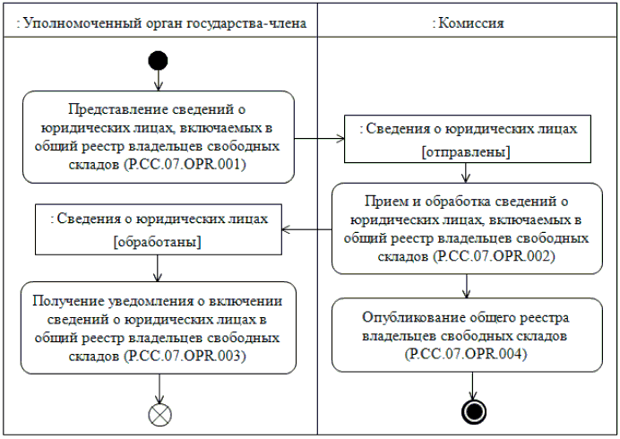 Рис. 3. Общая схема группы процедур представления уполномоченным органам государств-членов сведений о юридических лицах, содержащихся в общем реестре владельцев свободных складов