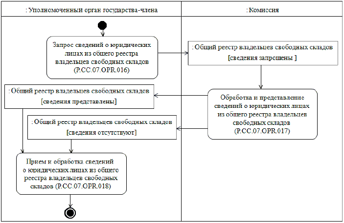 11. При выполнении процедур общего процесса осуществляется формирование общего реестра владельцев свободных складов на основании сведений о юридических лицах из национальных реестров, полученных от уполномоченных органов государств-членов, а также представление сведений о юридических лицах, включенных в общий реестр свободных складов, уполномоченным органам государств-членов и заинтересованным лицам.