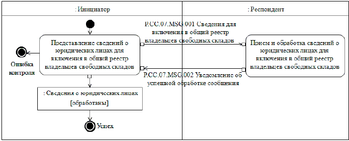 При представлении уполномоченным органам государства-члена сведений о юридических лицах выполняются следующие процедуры общего процесса, включенные в группу процедур представления уполномоченным органам государств-членов сведений о юридических лицах, содержащихся в общем реестре владельцев свободных складов: