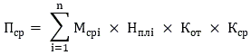 - платежная база за выбросы или сбросы i-го загрязняющего вещества, определяемая лицом, обязанным вносить плату, за отчетный период как масса или объем выбросов загрязняющих веществ или сбросов загрязняющих веществ в количестве равном либо менее установленных нормативов допустимых выбросов загрязняющих веществ или сбросов загрязняющих веществ, тонна (куб. м);