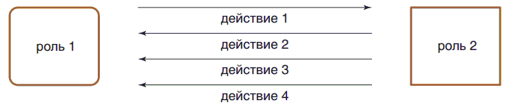На концептуальном уровне представляются основные сценарии для моделей связей, в которых роли делегированы конкретным участникам, и действия между ними описываются с использованием сообщений из перечня.