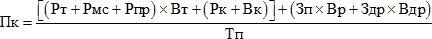 Р - нормативный показатель затрат на выполнение всех видов ремонтов, технического обслуживания, диагностирования машин, руб./маш.-ч;
