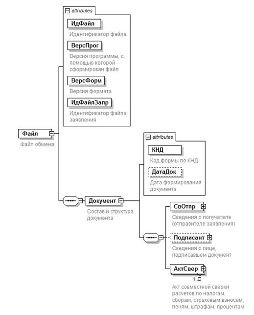 | Акт совместной сверки расчетов по налогам, сборам, страховым взносам, пеням, штрафам, процентам | АктСвер | С | | ОМ | Состав элемента представлен в таблице 4.5 |