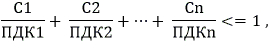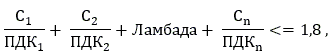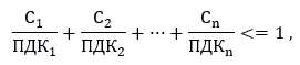 ПДК1, ПДК2, ..., ПДКn - предельно допустимые концентрации тех же веществ.