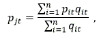 В качестве весов при расчете средних цен используются данные о количестве реализованной продукции в каждом отчетном периоде.
