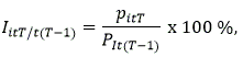 - индивидуальный индекс цен i-ого вида товара в отчетном месяце t отчетного года T к соответствующему месяцу t предыдущего года T - 1;