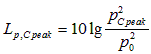 где - пиковое значение звукового давления, корректированного по частотной характеристике C, на интервале времени